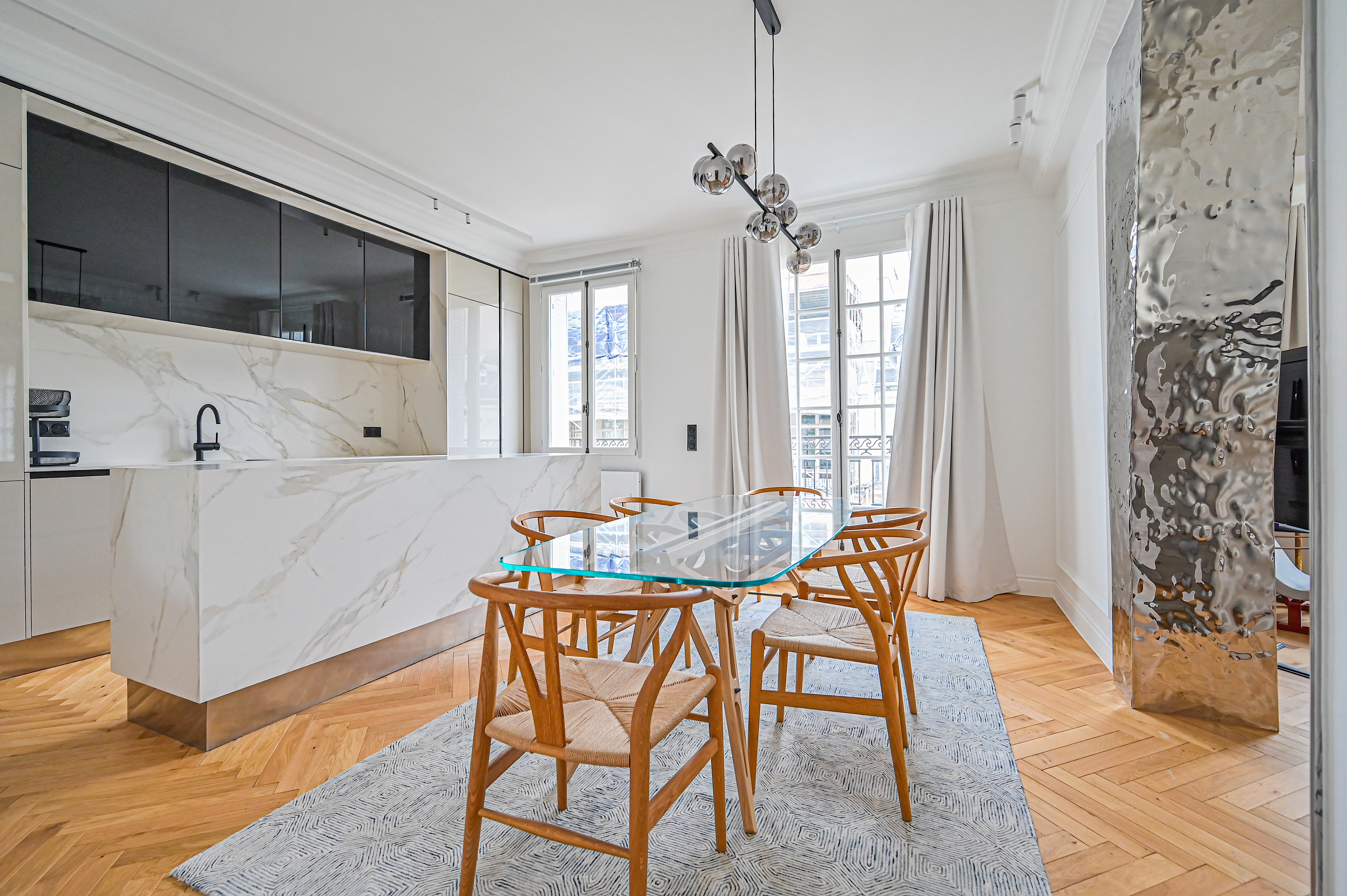Ideally located near Place de l’Alma, just moments from Avenue Montaigne, this elegant 175 sqm apartment sits on the 6th floor of a prestigious building with elevator and concierge/guardian service.