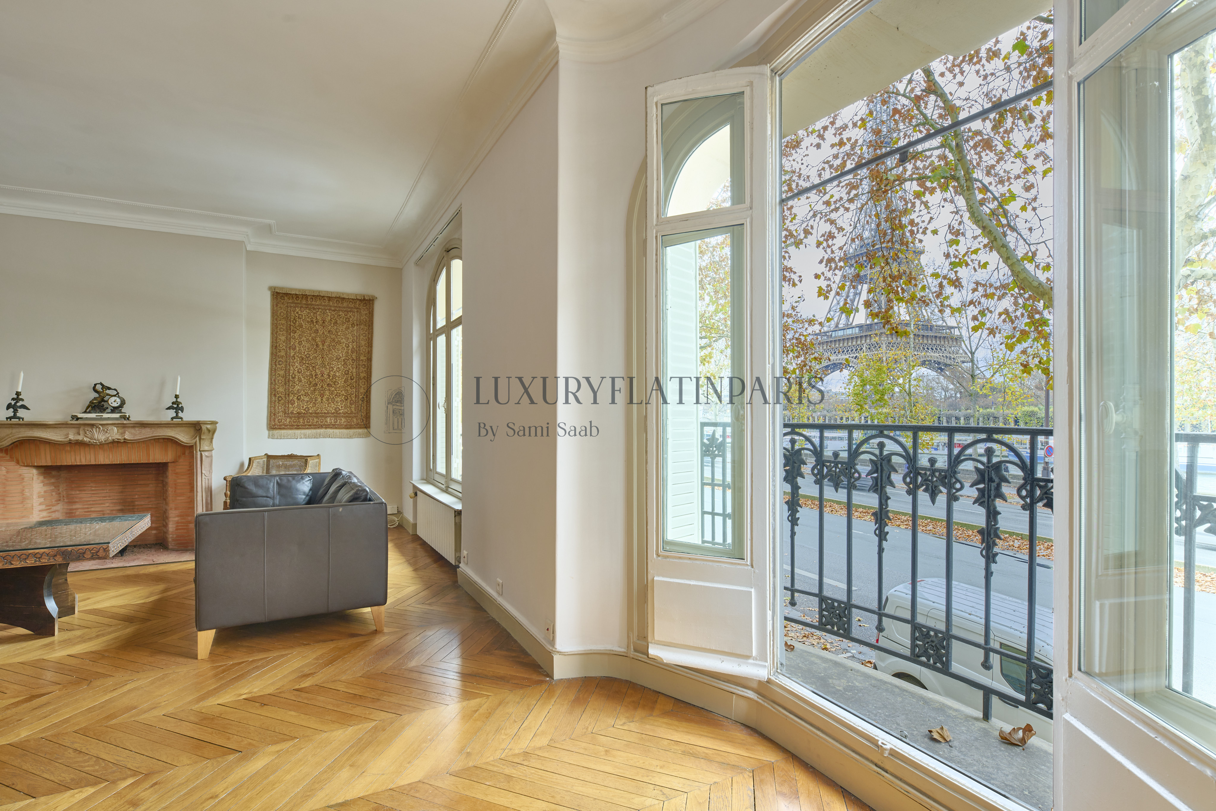 Located in an elegant Art Deco building with a live-in caretaker, this 160 sqm apartment enjoys an exceptional address on Avenue de New York, offering direct views of the Eiffel Tower and the Seine.