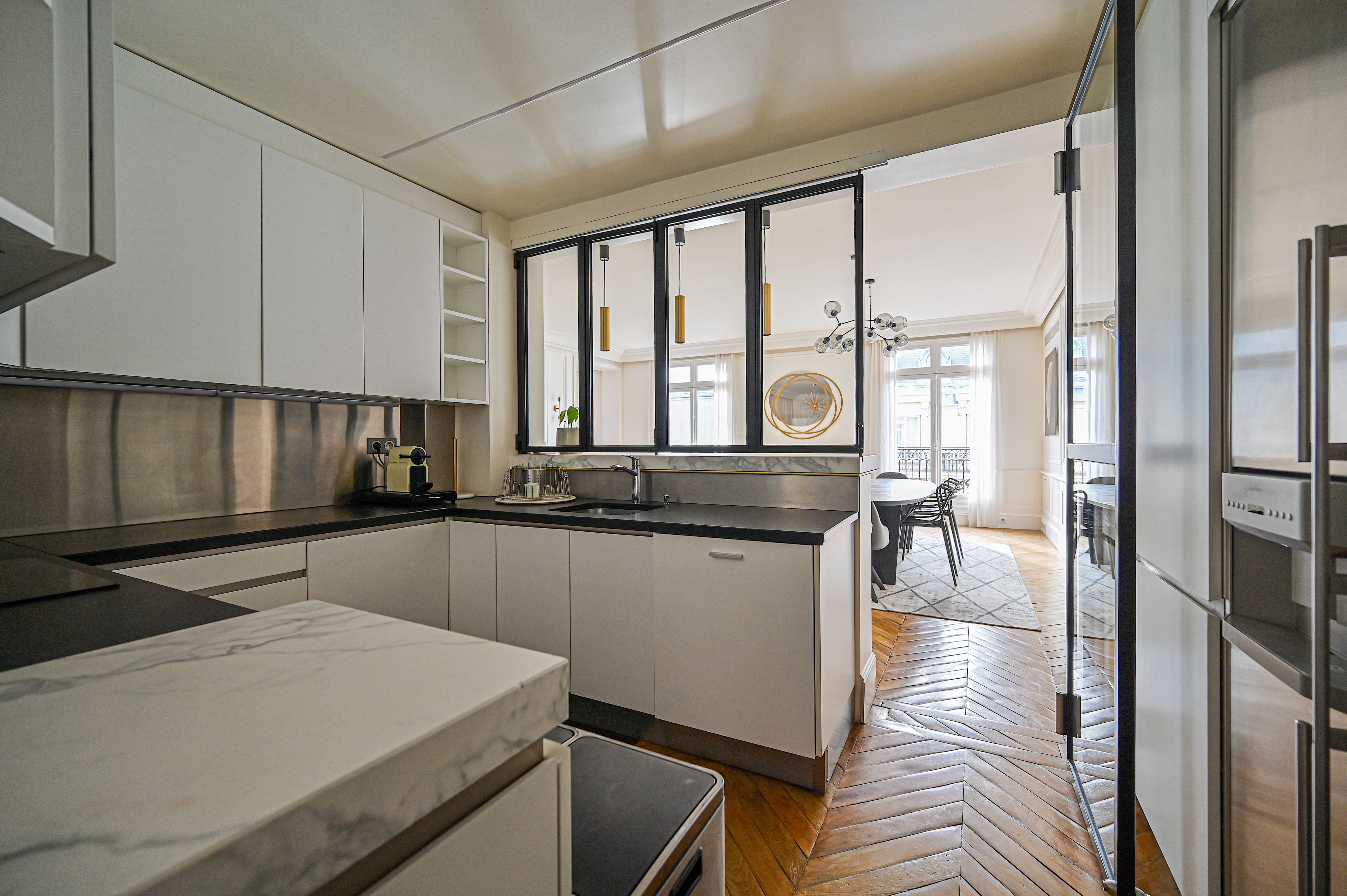 A truly exceptional 350 sqm duplex, meticulously fully renovated and presented in immaculate condition. Designed for elegant Parisian living and entertaining, it offers spectacular volumes, refined finishes and a rare sense of privacy, within a highly secure building with guardian, code and digicode access. Fully air-conditioned throughout.